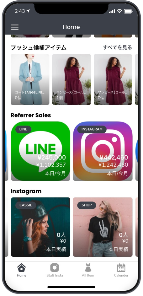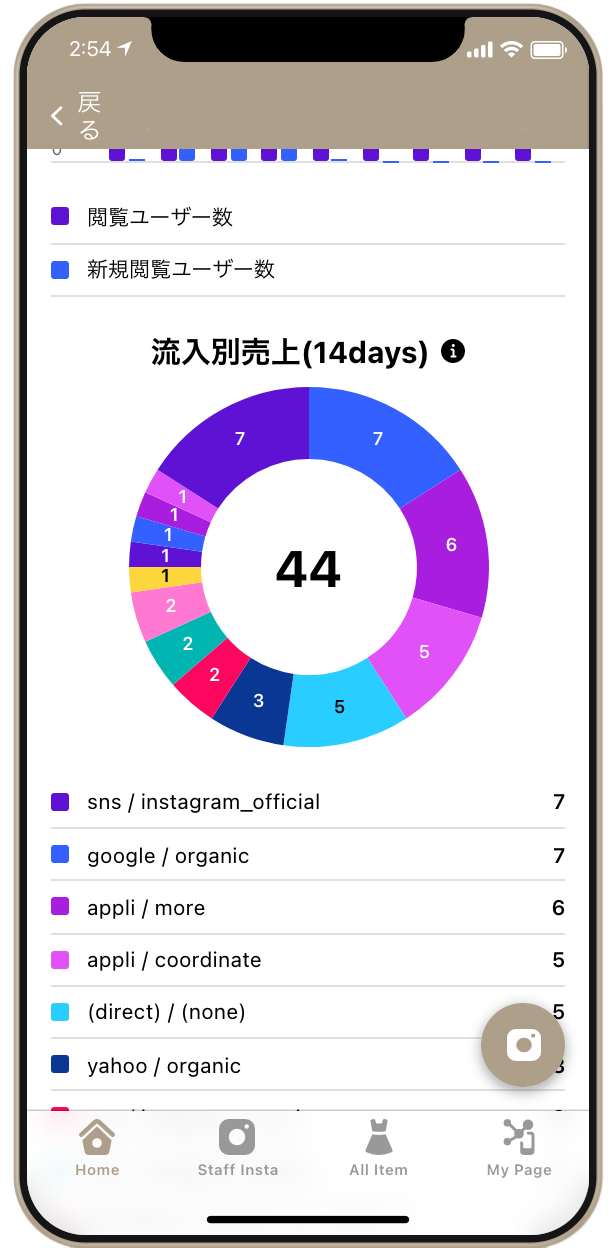 集客手段が多様化していく中で、オフィシャルSNSや販売スタッフのSNSアカウントといった全ての流入元別のKPIを簡単に管理できます。